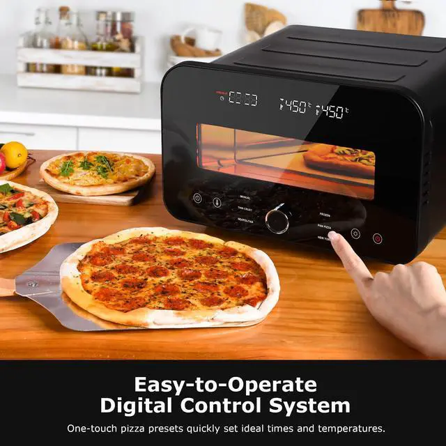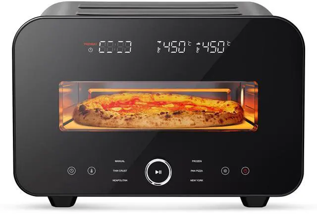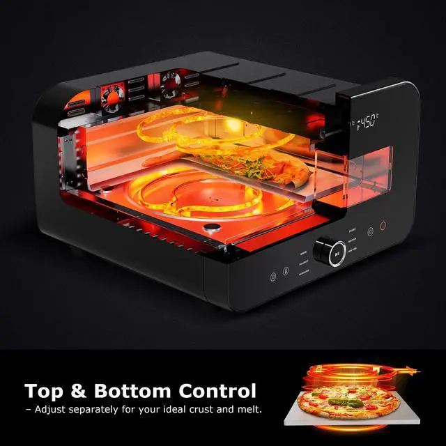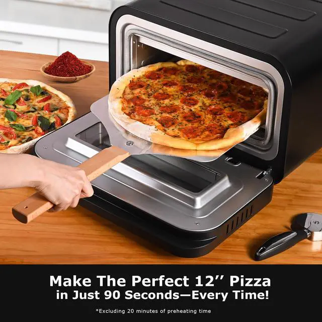 Restaurant-Quality Pizza in Minutes Whip up a flawless 12" pizza with a beautifully charred crust and perfectly melted cheese in just 90 secondsno rotation needed! (excludes 17-minute preheat)
