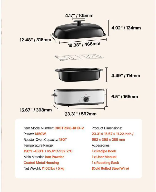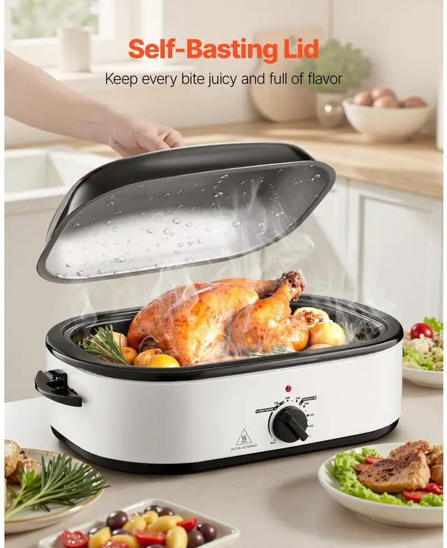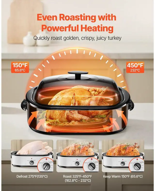 Roaster Oven, 18QT Electric Roaster Oven, 150-450 Adjustable Temperature Electric Roasting Pan, Multifunctional Electric Roasters Oven with Self-Basting Lid, Removable Pan and Rack for Holiday