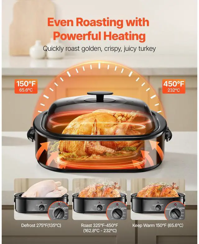 • Electric Roaster Oven 18QT Electric Turkey Roaster with Self-Basting Lid