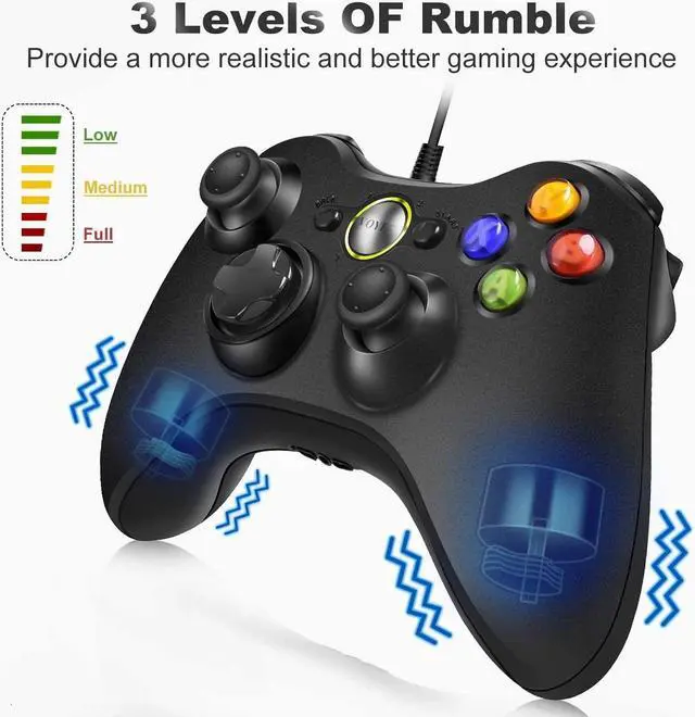 DOUBLE SHOCKVOYEE 360 Wired Controller built in two electric motors makes each hit, crash and explosion is more Excite and realistic, You will feel the Rumble in the palm of your hand