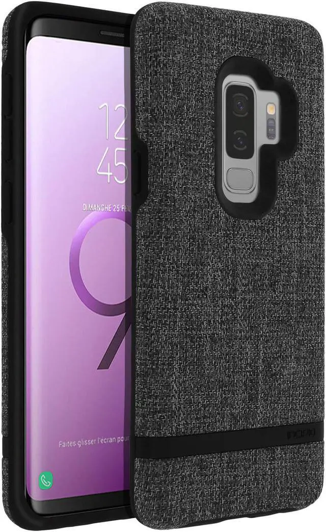 Get a case that complements your everyday wardrobe. The Incipio Esquire Series Carnaby Case features a fashionable chambray finish and attractive metal hardware accents for giving your Samsung Galaxy S9+ the attention it deserves. Enhanced protection. Double your defense without adding extra bulk. Guard against bumps and impact damage using the impact- and shock-resistant TPU frame. Protect your Galaxy S9+ from drops up to 6 feet. * A raised bezel helps prevent scrapes and scratches from blemishing on your screen. User-friendly installation. Attach and detach your case with ease using its pliable bumper.
