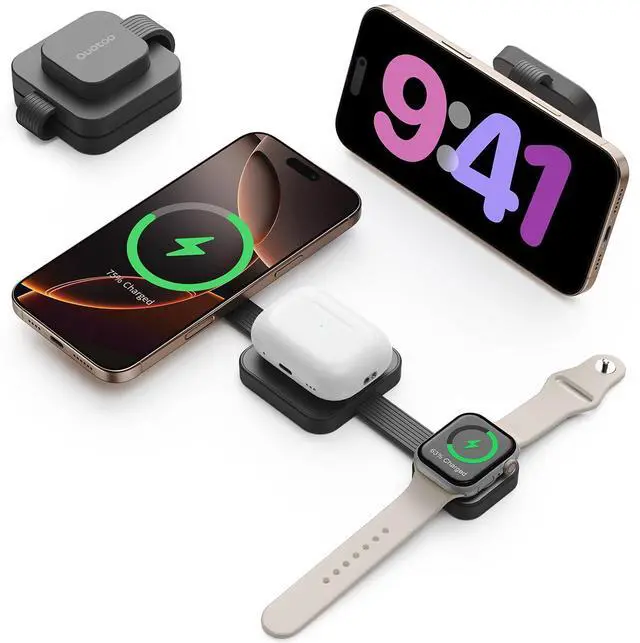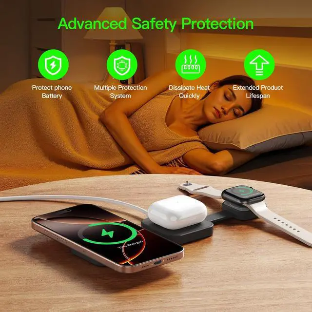 3-in-1 magnetic suction wireless charger Fast charging up to 18W150 minutes full 100%25% faster than peers High safety performance Supported Devices: 1.[For Phone]iPhone Air/ iPhone17/iPhone 17 Pro/iPhone 17 Pro Max/ iPhone16/16pro/16pro Max/iPhone 15/iPhone 15 Plus/iPhone 15 Pro/iPhone 15 Pro Max/iPhone 14/ iPhone 14 Pro/iPhone 14 Pro Max/ iPhone 14 Plus/ iPhone 13 mini/ iPhone 13/ iPhone 13 Pro/ iPhone 13 Pro Max/ iPhone 12 mini/ iPhone 12/ iPhone 12 Pro/ iPhone 12 Pro Max 2.[For Watch] UItra 2/UItra/9/8/7/6/ SE/ SE 2/ 5/ 4/ 3/ 2 3.[For AirPods] AirPods 2/ AirPods Pro/ AirPods 3 4.Perfectly compatible for professional magnetic phone cases
