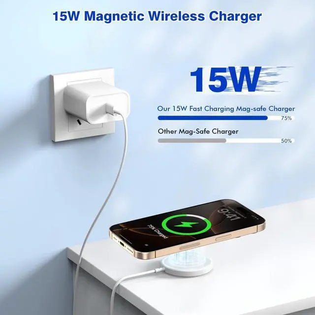 | Included Components | 1Pack 15W Magnetic iPhonenWireless Charger Pad, 1Pack 20W USB C Charger Block Fast Charging Adapter |