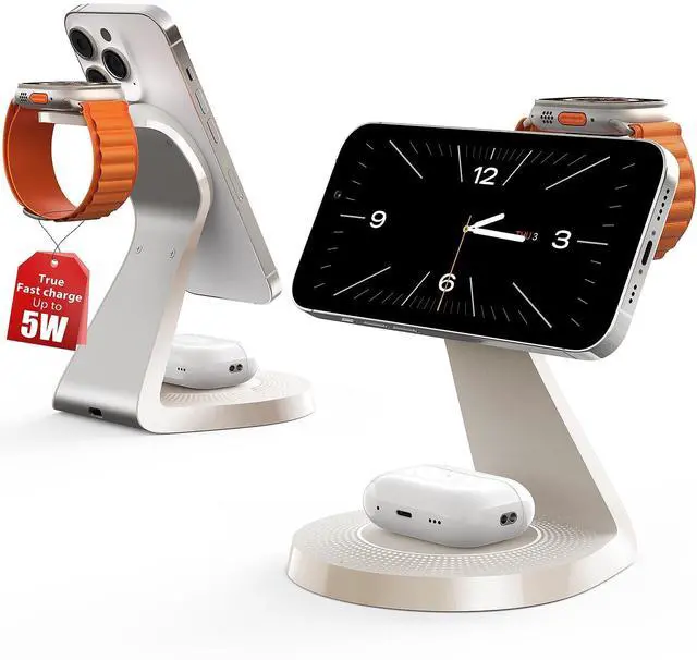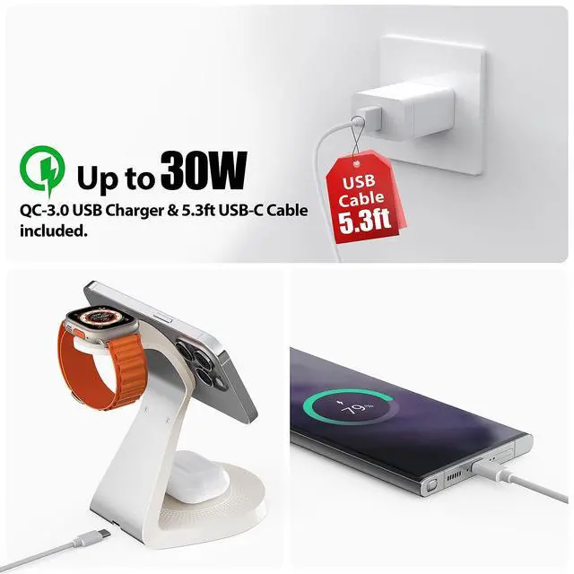 What's Included: 3-in-1 Magnetic wireless Charger, 5.3 ft (1.65m) USB-C cable, Power Adapter, user manual