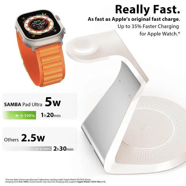 Fast Charging for Apple Watch: Up to 5W Apple Watch charger. Charge Apple Watch 9 up to 80% in just 45 minideal for a fast charge before bed, ensuring it's ready to monitor your sleep all night