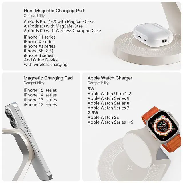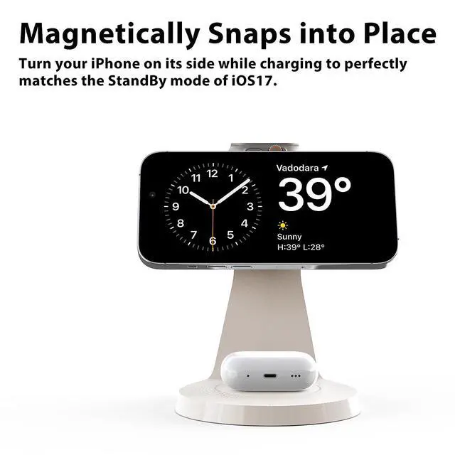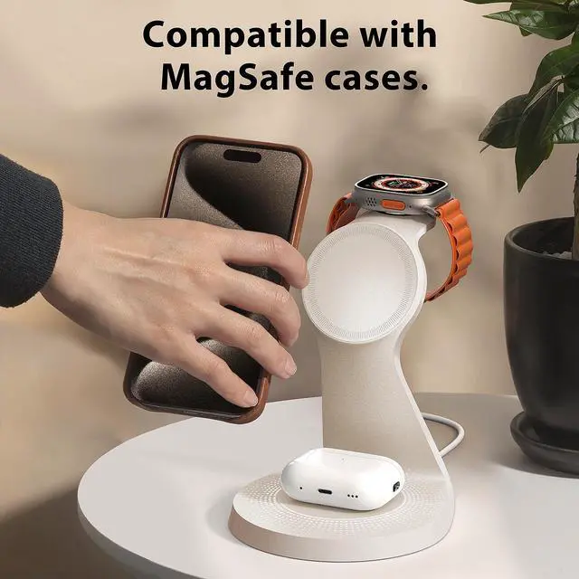 3-in-1 Charging Station for Apple Device: Charge your iPhone, Apple Watch, and AirPods simultaneously. Eliminate cable clutter and keep your desk organized