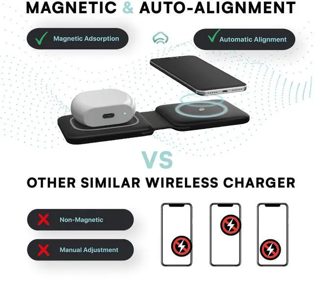 | Mag-safe Accessories | 2 in 1 Wireless Charger | Magnetic Charger | Phone Holder with 3m sticker | Non-Magnetic Metal Ring |
