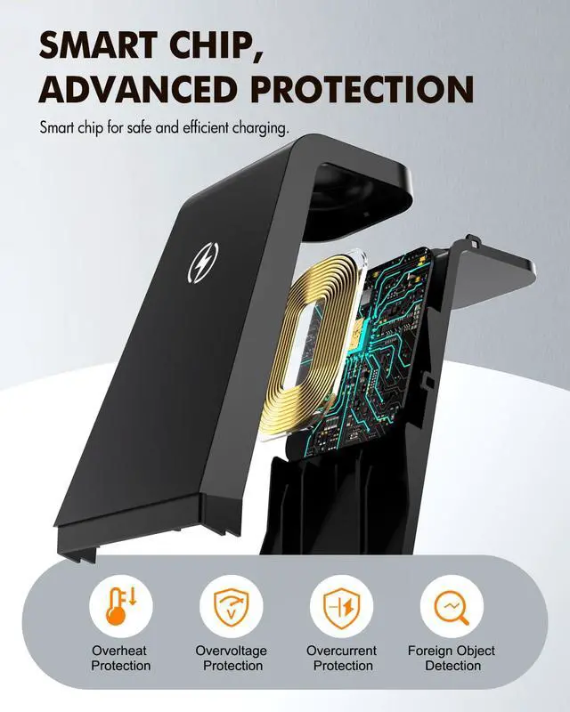 Fast Charging & Smart Protection: It delivers up to 15W fast wireless charging for Samsung Galaxy / Note and Z Fold series, 2.5W for Galaxy Watch, and 3W for Galaxy Buds. The builtin smart chip ensures temperature control, voltage protection, and stable charging throughout use
