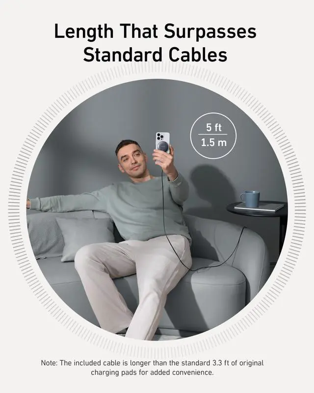 | MagSafe-Compatible Charging | Achieve 15W power with a wireless charger that's ideally crafted for MagSafe-enabled iPhones, assuring effective charging even through magnetic cases. |