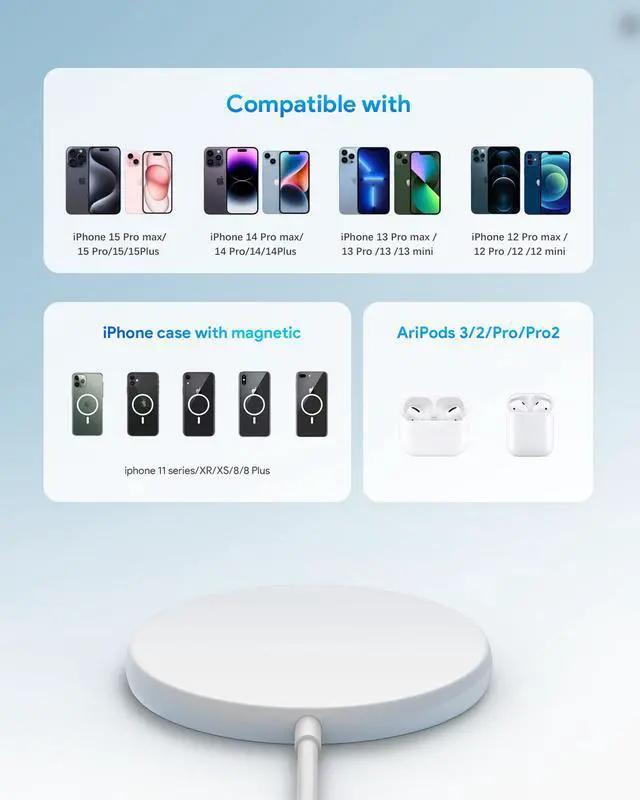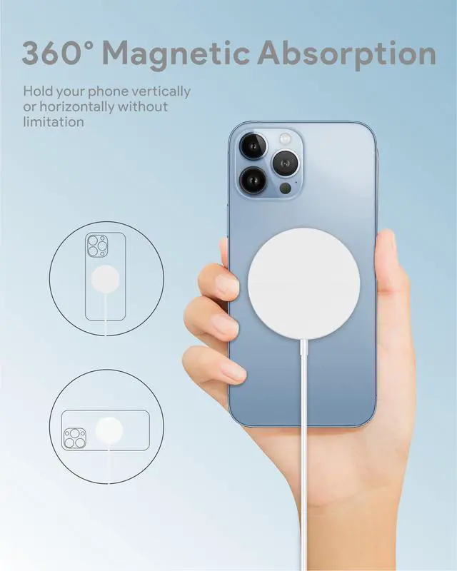 When charging, please place the mobile phone correctly on the wireless charger, or rotate the mobile phone to let the magnetic wireless charger absorb itself