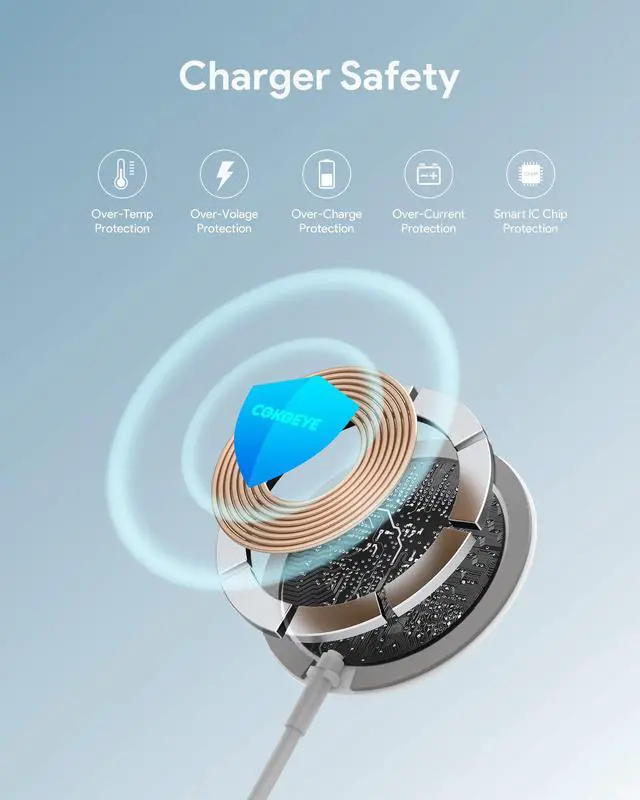 The smart chip can promote the smooth output of current to prevent overcurrent, overvoltage, overheating and short circuit. The ultra-thin design can efficiently fan the heat during charging to ensure safe charging