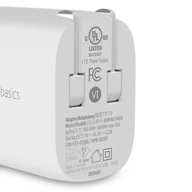 In the box: 1-port USB-C wall charger, user manual, and an Amazon Basics 1-year limited warranty