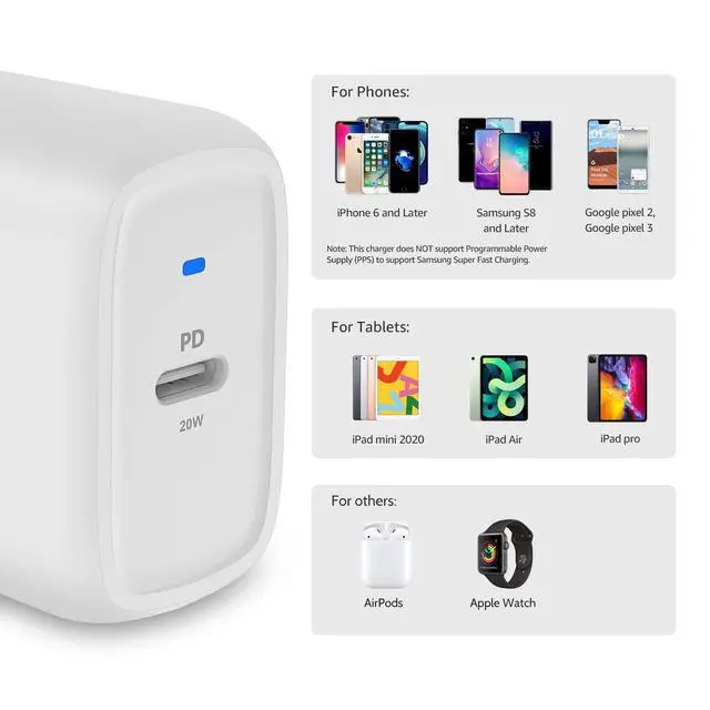 Fast charging: 20-watt USB for high-speed charging of compatible devices, like iPhone, iPad, AirPods, Apple Watch, Samsung Galaxy, and more