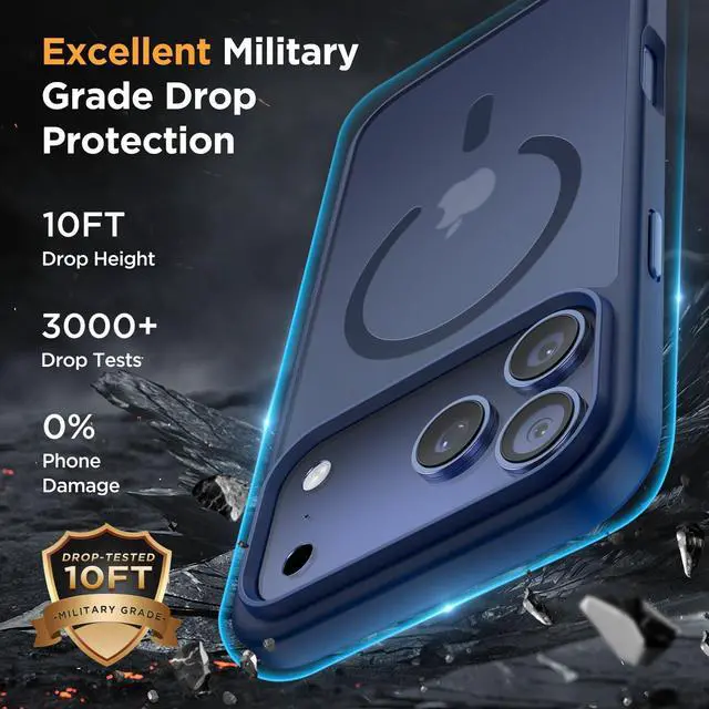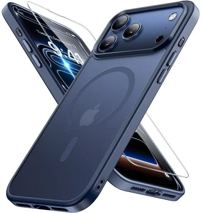 Magnetic for iPhone 17 Pro Max Case (Compatible with MagSafe) with Screen Protector Military-Grade Protection, Anti-Fingerprint Matte Phone Cover for iPhone 17 Pro Max 6.9 inch, Blue