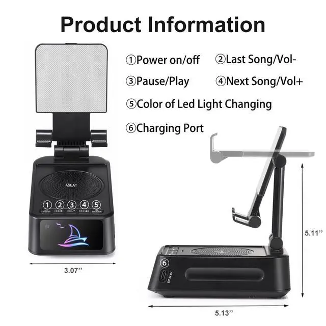 3 IN 1 Cell Phone Stand with Bluetooth Speaker & Colorful Gradient LED Light