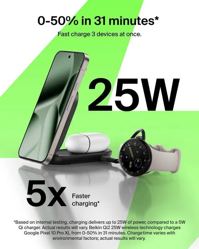 | Compatibility | iPhone 16 Pro Max, iPhone 16 Pro, iPhone 16 Plus, and iPhone 16, iPhone 15, iPhone 15 Plus, iPhone 15 Pro, iPhone 15 Pro Max, iPhone 14 Series, iPhone 13 Series, iPhone 12 Series, AirPods 4th Gen, AirPods 3rd Gen, AirPods Pro 2nd Gen, AirPods Pro 3rd Gen, AirPods Pro 4th Gen, Google Pixel 10 Pro XL, iPhone 17 Pro Max, iPhone 17 Pro, iPhone 17 Air, and iPhone 17, iPhone 16 Pro Max, iPhone 16 Pro, iPhone 16 Plus, and iPhone 16, iPhone 15, iPhone 15 Plus, iPhone 15 Pro, iPhone 15 Pro Max, iPhone 14 Series, iPhone 13 Series, iPhone 12 Series, and more, Fast Charging, Qi2 Certified, Magsafe Compatible, Foldable, Travel |