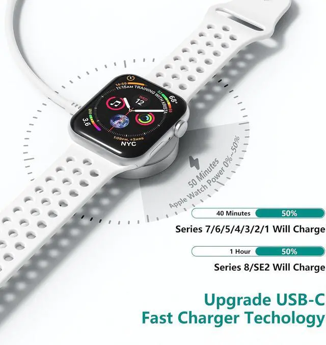 Compatible: iPhone Watch Charger supports for Apple Watch Series 9,8,7,6,5,4,3,2,1, Series SE. Also compatible with watch sizes, including 38mm, 40mm, 41mm, 42mm, 44mm and 45mm versions. Apple Watch Ultra, Apple Watch Sports.