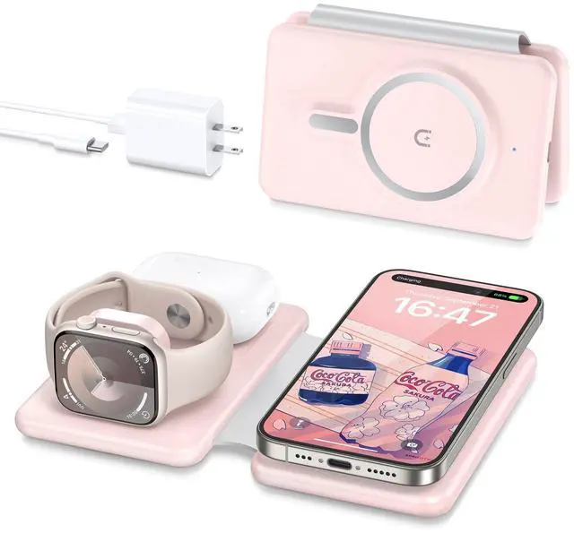 Due to its foldable and compact design, this 3 in 1 charging station is a must-have for travel.