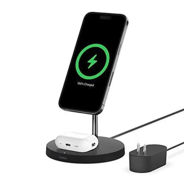 2-IN-1 CHARGER: Power your Apple ecosystem with this Belkin 2-in-1 Wireless iPhone Charger Stand. It is the perfect charging station for multiple Apple devices, including iPhone 17, 16, 15, 14, 13 and 12, Pro & Pro Max, and AirPods
