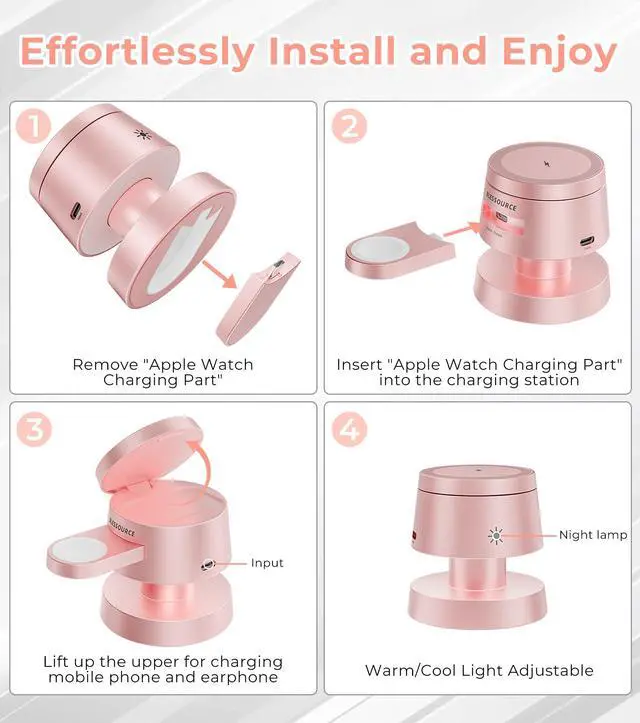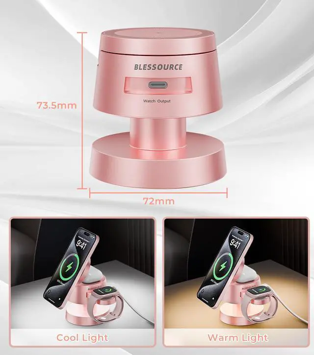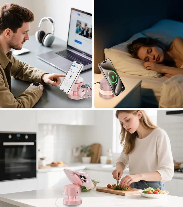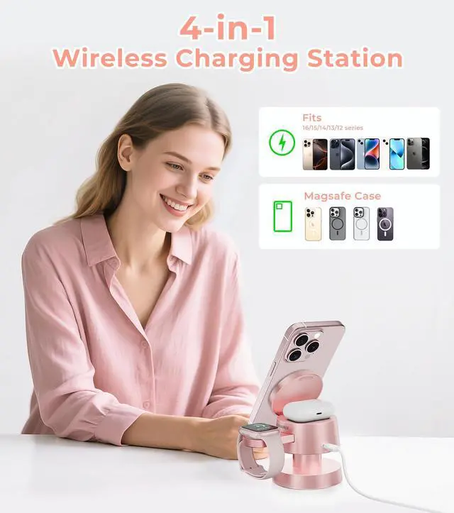 4-in-1 Magnetic Wireless Charging Station for iPhone 17/16/15/14 Pro Max, with Night Light Wireless Charging Station Fast Charging for Apple Watch, Earphones & Multiple Devices
