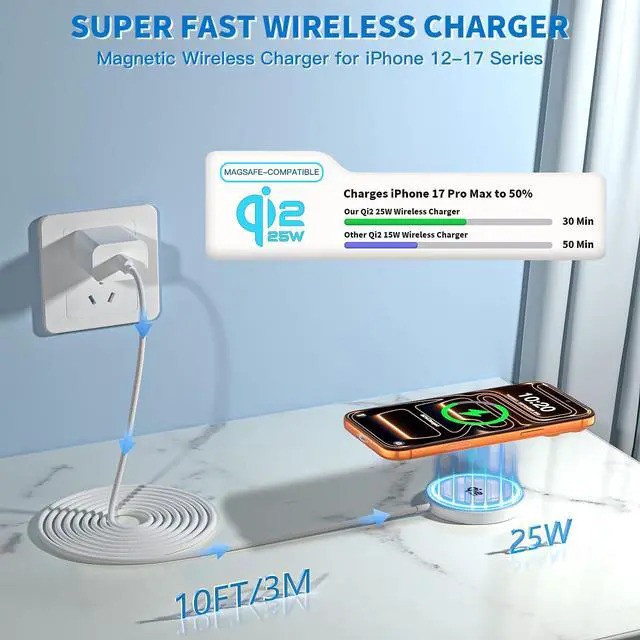 ![Alt view image 4 of 7 - [Apple Qi2.2 Certified]Magnetic Wireless Charger, 10FT 25W iPhone Magsafe Charger Fast Phone Charging Pad Wireless Magnetic Braid Cable Charge for iPhone 17/17 Pro/17 Pro Max/Air/16 ProMax/15/14/13/12](https://c1.neweggimages.com/productimage/nb640/C5TPD2603130OKSTSAB.jpg)