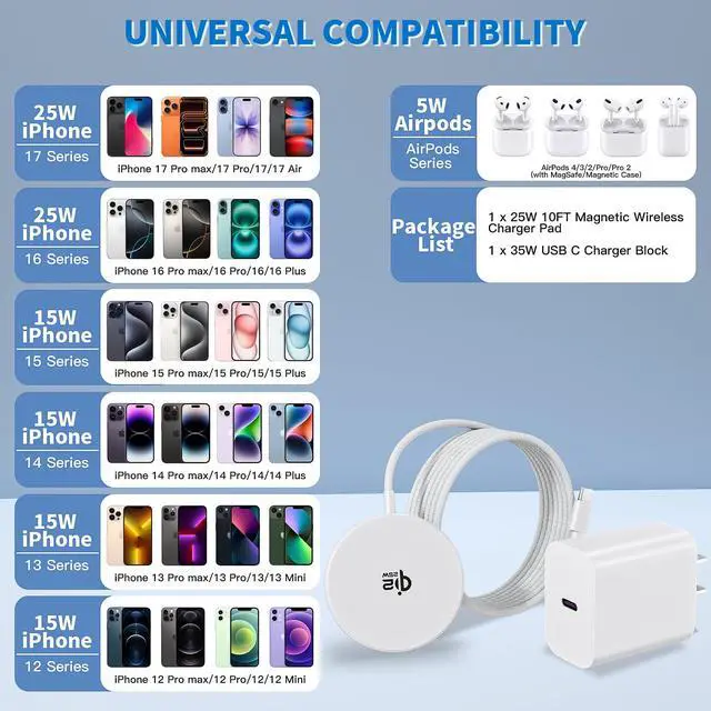 ![Alt view image 3 of 7 - [Apple Qi2.2 Certified]Magnetic Wireless Charger, 10FT 25W iPhone Magsafe Charger Fast Phone Charging Pad Wireless Magnetic Braid Cable Charge for iPhone 17/17 Pro/17 Pro Max/Air/16 ProMax/15/14/13/12](https://c1.neweggimages.com/productimage/nb640/C5TPD2603130OKSR6C8.jpg)
