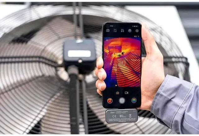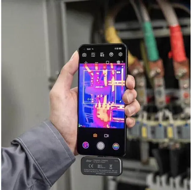 Experience fast and easy inspections on the go with Fluke iSee Mobile Thermal Camera, weighing just 22g. It takes only a second to start using. The wide temperature measurement range, up to 550°C (1022°F), makes it suitable for various applications, including inspecting electrical cabinets, identifying HVAC issues, and installing underfloor heating. Fluke iSee boasts professional-grade image quality, comparable to high-end thermal cameras, with a 256 x 192 pixel thermal resolution and smooth video recording at a 25 Hz frame rate. Additionally, our software offers comprehensive spot, line, and area temperature analysis for precise diagnostics.