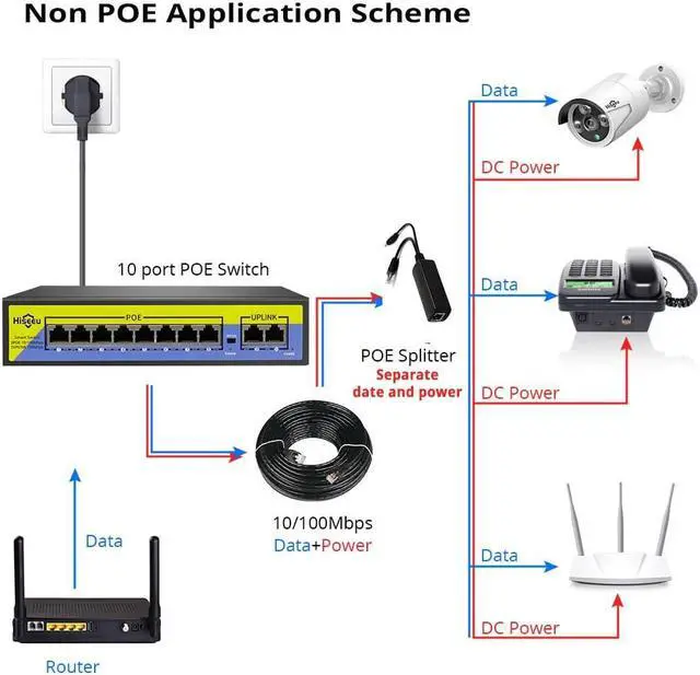 ***Support to connect with Non-POE IP Camera (need extra 48V POE Splitter to connect) / Wireless AP/ POE Camera***