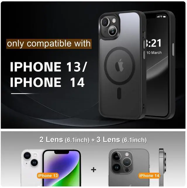 ![Alt view image 5 of 6 - SOEWIOU Magnetic for iPhone 13 Case/iPhone 14 Case, [Compatible with Magsafe & Military-Grade Protection] Slim Translucent Matte Phone Case for iPhone 13/14 6.1 inch,Black](https://c1.neweggimages.com/productimage/nb640/C3ZWD2601040C1CMHF7.jpg)