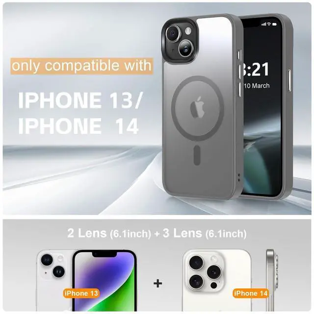 ![Alt view image 6 of 7 - SOEWIOU Magnetic for iPhone 13 Case/iPhone 14 Case, [Compatible with Magsafe & Military-Grade Protection] Slim Translucent Matte Phone Case for iPhone 13/14 6.1 inch, Gray](https://c1.neweggimages.com/productimage/nb640/C3ZWD2601040CAFJ520.jpg)