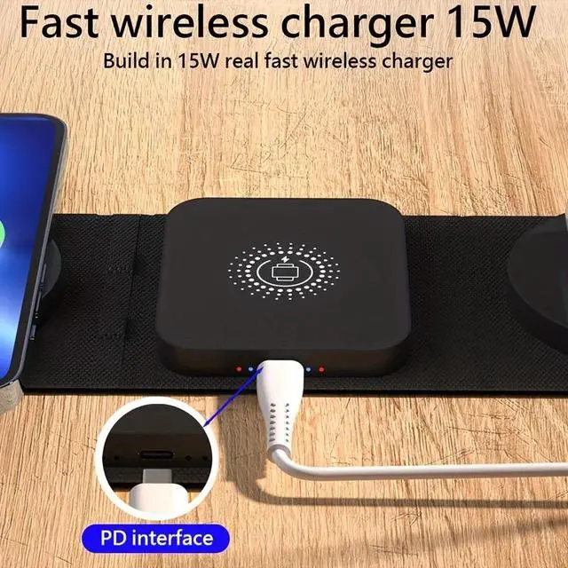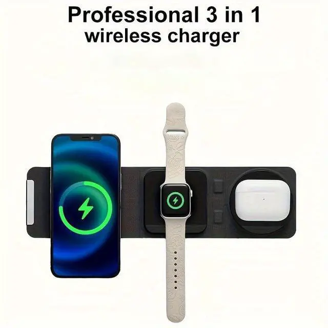 • Neat desktop charging station3 in 1 wireless charging station supports three devices - iPhone,AirPods and Apple Watch -charging simultaneously to save you from messing with a bunch of cables.