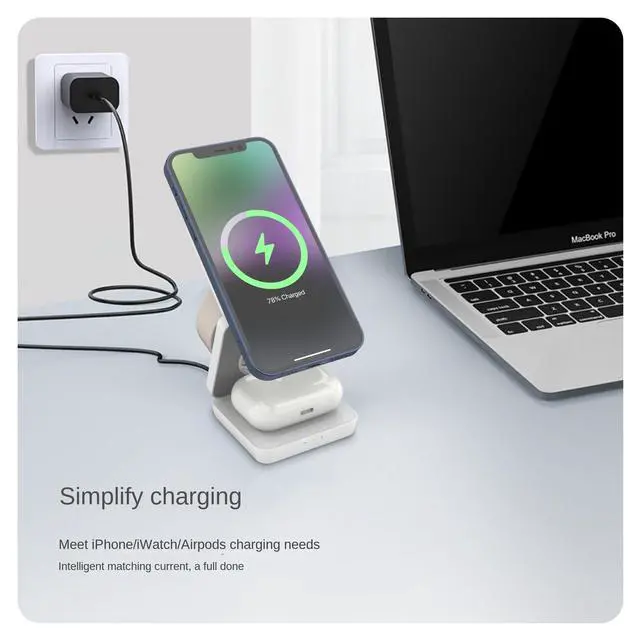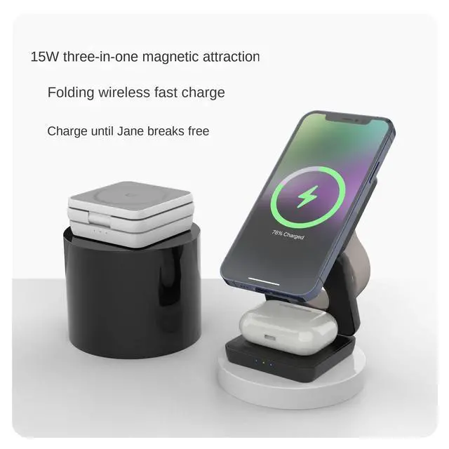 • Three-in-one Multi-function Folding Wireless Charger for for Portable Magnetic Mobile Phone Holder Fast Charging 15W