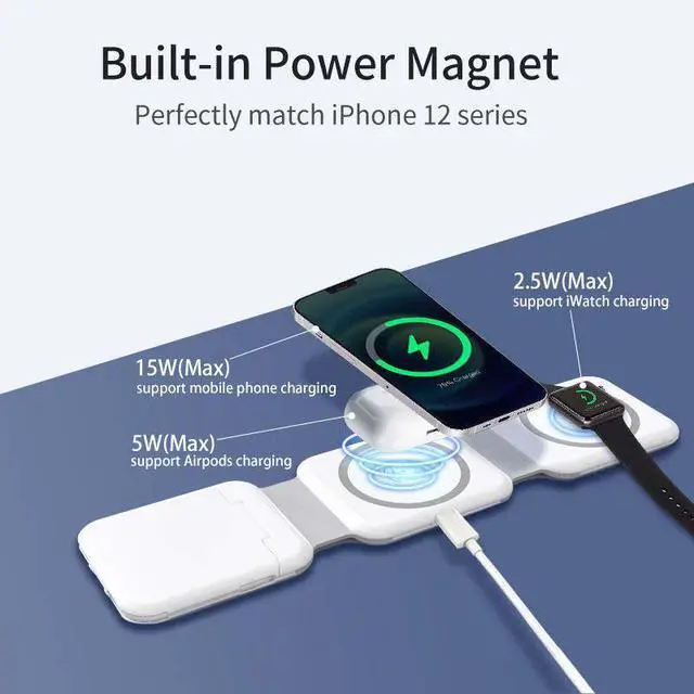 Universal Compatibility: Charges multiple devices including smartphones, smartwatches, and earbuds.