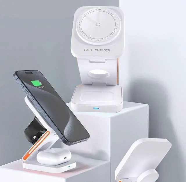 • 3-in-1 Foldable Magnetic Wireless Charger Multifunction Phone Charging Stand with Holder