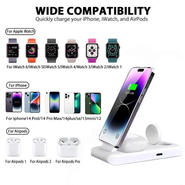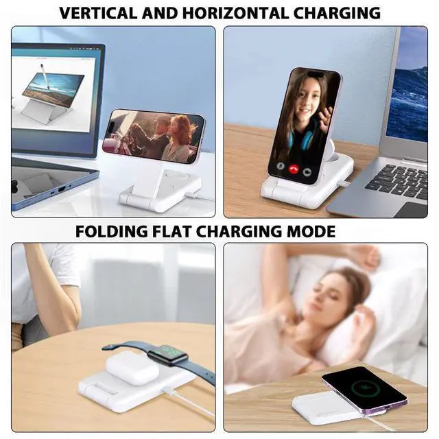 • 3-in-1 Travel Wireless Charger 3in1 Foldable Charging Stand Compatible With iPhone Watch Multiple Devices Mobile Phone Stand