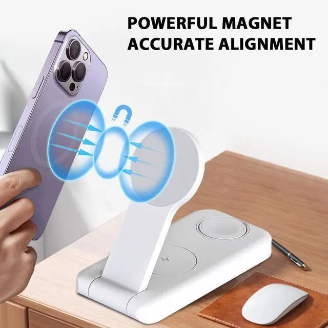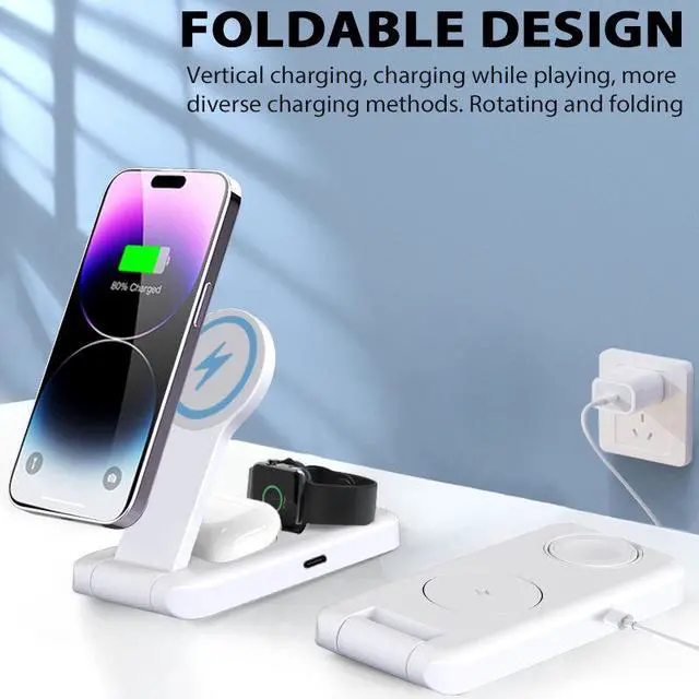 • 3-in-1 Travel Wireless Charger 3in1 Foldable Charging Stand Compatible With iPhone Watch Multiple Devices Mobile Phone Stand