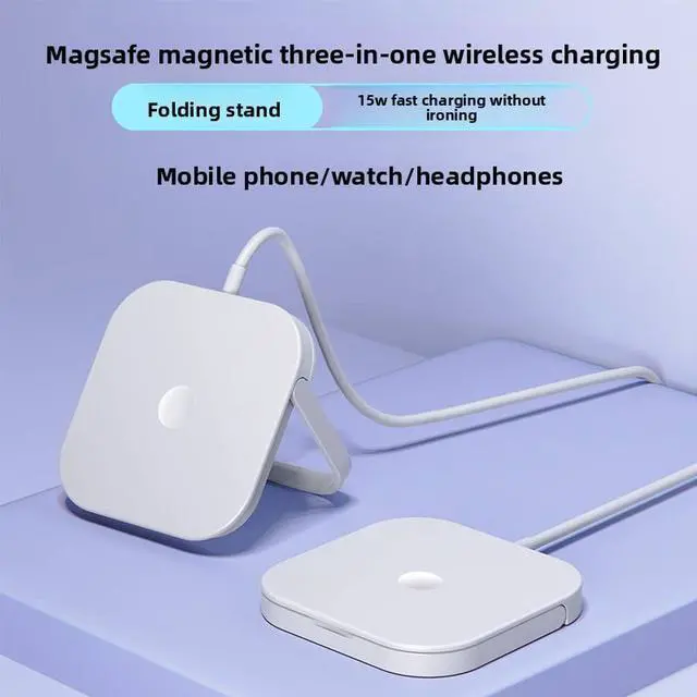 • 3 in 1 Fast 15W Wireless Charger for Phones Magnetic with Foldable Stand Multifunction Magnetic Wireless Charger
