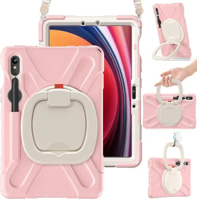 Functionality: 360°rotating / 180°folding Grip can be used as a handle, easy to hang your Sam-sung galaxy tablet S10 FE/ S9 FE case in kitchen, washroom, bedroom; Kickstand is stable enough to stand on different surfaces for children to view. Button and port cover enable to prevent dust, it also support S Pen Charging