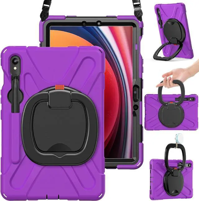 Rugged Case for Sam-sung Galaxy Tab S10 Lite/S10 FE 2025 & S9 FE/S9/S8/S7 10.9/11 Inch | Shockproof Protective Silicone Cover with Rotating Stand, Kickstand, Shoulder Strap & Pen Holder, Purple