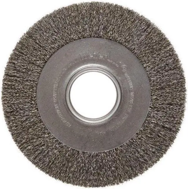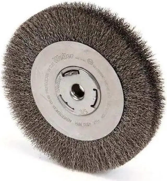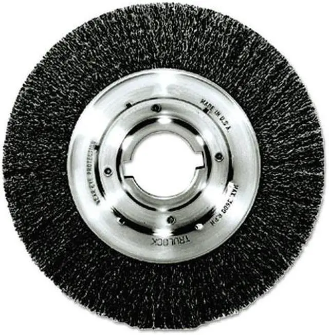 Greater fill density and more aggressive brushing action. Can be mounted in multiples. Type: Crimped-Wire Wheel; Wheel Diameter: 8"; Speed: 4,000 rpm; Material(s): Steel.