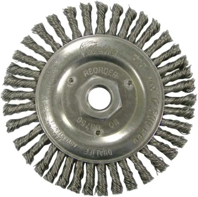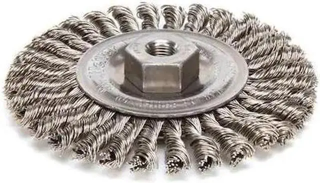 Knot Wire Wheels - Standard Twist - Provide heavy-duty brushing action with some flexibility; ideal for demanding cleaning applications on somewhat irregular surfaces. Features feature a narrow face width suitable for cleaning welds and reaching into corners.