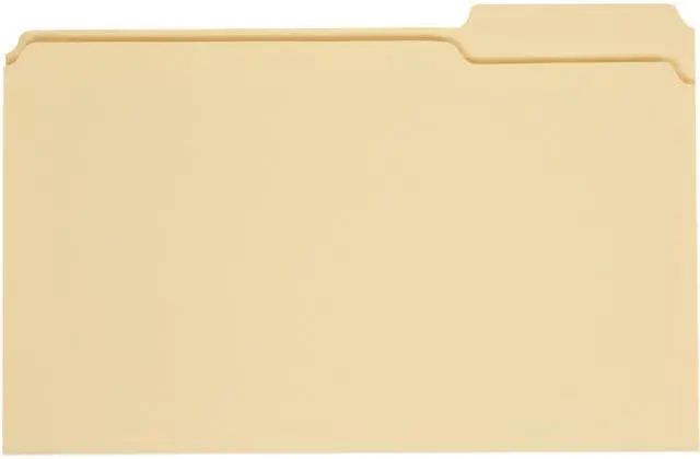 File Folders, 1/3 Cut, One-Ply Top Tab, Third Position, Legal, Manila,