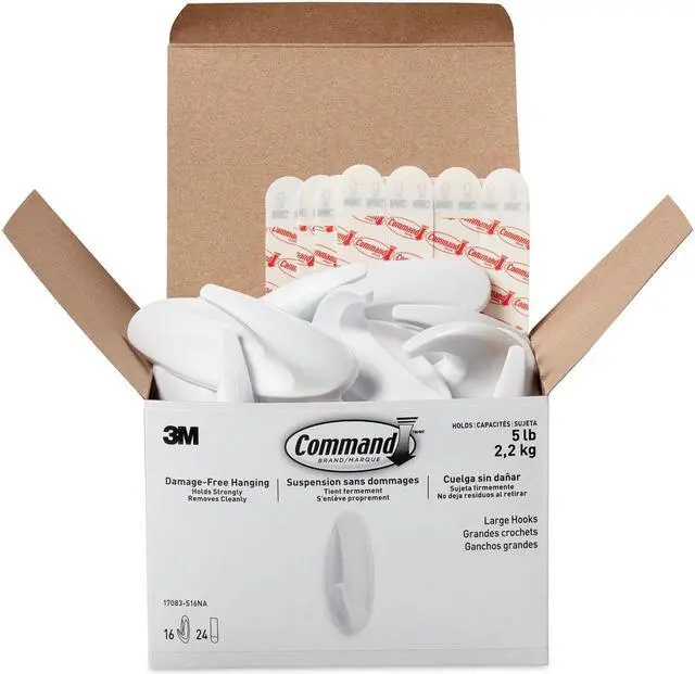 - INCLUDES - 16 hooks and 24 large indoor strips; 1 hook holds 5 lbs.