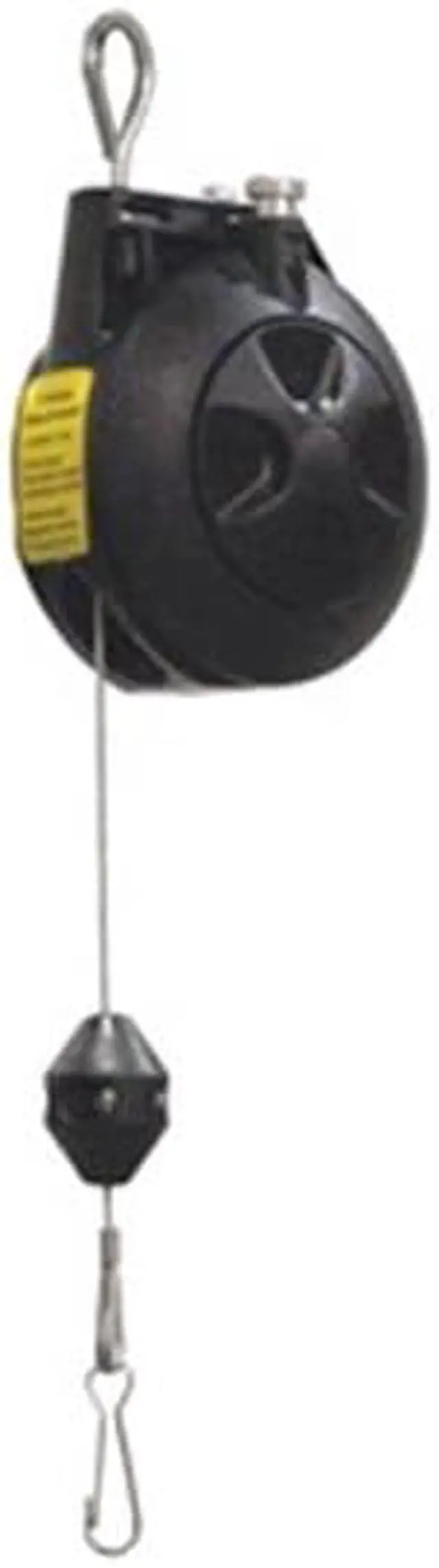 Tool Balancer, Product Type Tool Balancer, For Tool Weighing 3.00 to 5.00 lb, Maximum Tool Weight 5 lb, Minimum Tool Weight 3 lb, Cable Length 6 ft, Cable Material Zinc Plated Steel, Housing Material Composite, Reel Mount Type Swivel Hook, Reel Height When Retracted 9 1/4 in, Lock Mechanism Non-Locking, Rotation Type Fixed, Tool Attachment Type Snap Hook, Shock Absorption Not Included, Spring Fail Mechanism No, Drum Type Standard, Includes Cable Stop, Safety Tool Clip, Overall Depth 4 in. This item has been restricted from sale in the following state (s): []
