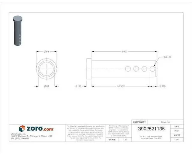 A clevis pin is a type of fastener that will allow rotation of the connected parts about the axis of the pin. A clevis pin consists of a head, shank and hole. The hole passes through the shank at the opposite end of the pin from the head. A cotter pin is inserted through the hole to keep the clevis pin in place after assembly of the parts to be fastened.