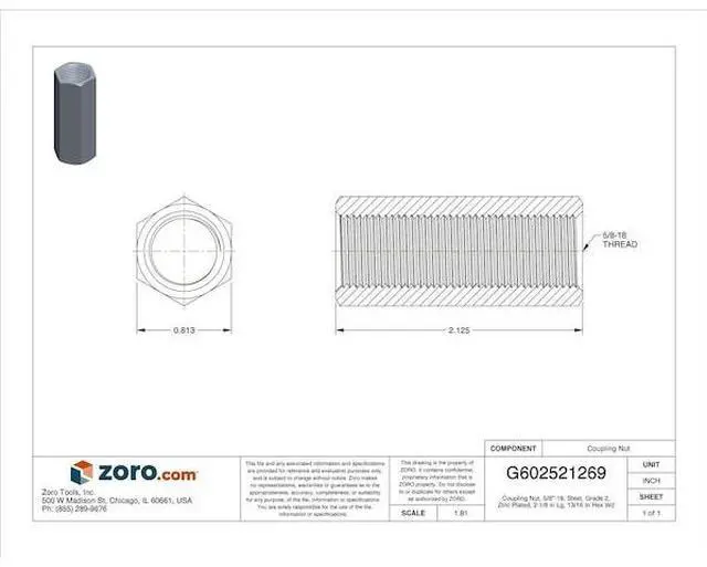 MIDWEST FASTENER 76247 Coupling Nut, 5/8"-18, Steel, Grade 2, Zinc Plated,