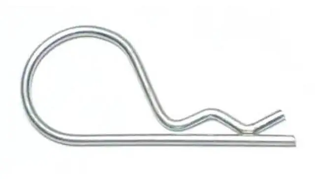 A hitch pin clip is a fastener made of a springy material, commonly hardened metal wire, in the shape of the letter "R". They are commonly used to secure the ends of round shafts such as axles and clevis pins.