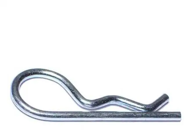 A hitch pin clip is a fastener made of a springy material, commonly hardened metal wire, in the shape of the letter "R". They are commonly used to secure the ends of round shafts such as axles and clevis pins.