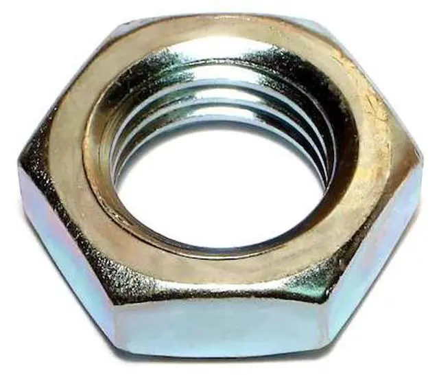 A jam nut is a low profile type of nut, typically half as tall as a standard nut. It is commonly used as a type of locknut, where it is "jammed" up against a standard nut to lock the two in place. It is also used in situations where a standard nut would not fit.