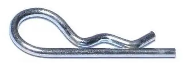 A hitch pin clip is a fastener made of a springy material, commonly hardened metal wire, in the shape of the letter "R". They are commonly used to secure the ends of round shafts such as axles and clevis pins.